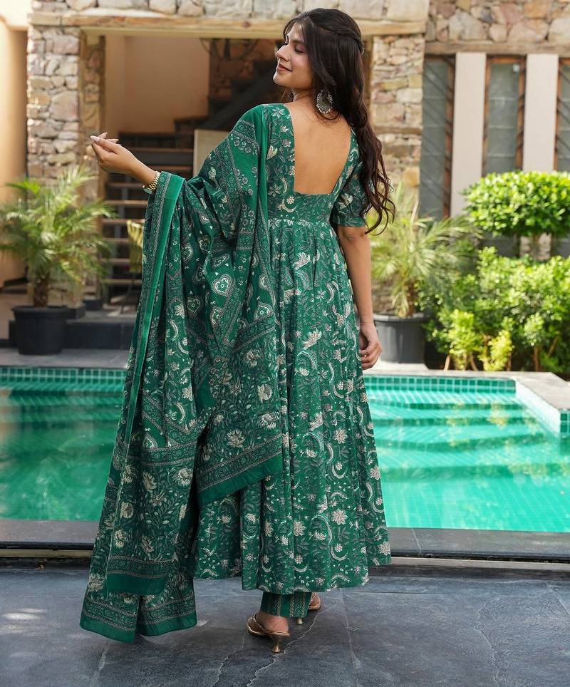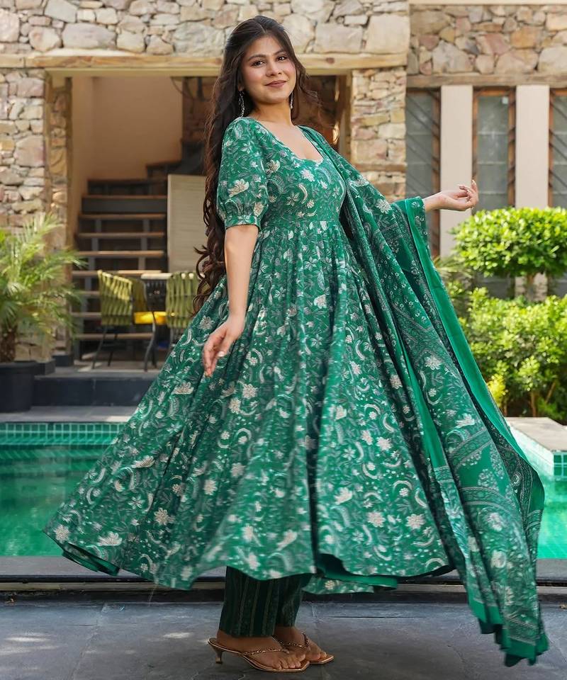 | Product Name | Green Color Muslin Fabric Designer Digital Printed Partywear Attire For Girl | |