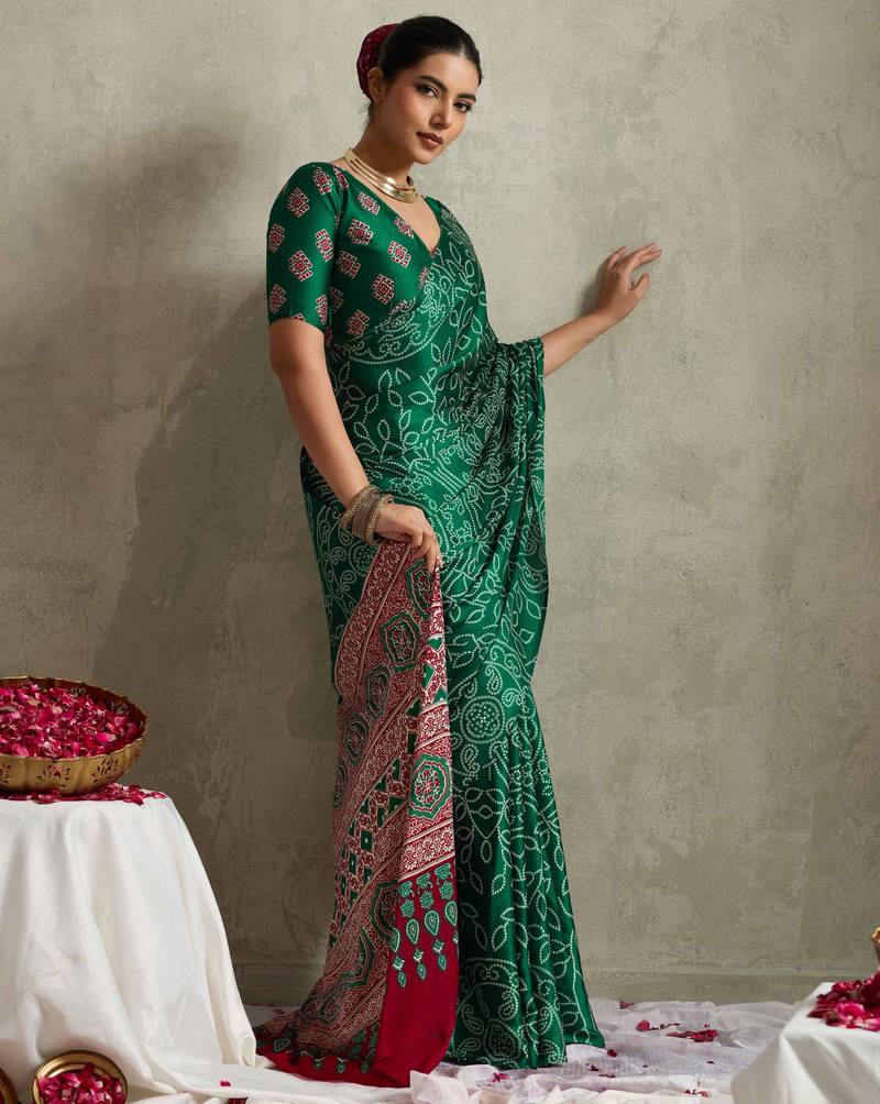 | Product Name | Green Color Rich Looks Designer Bandhani Printed Elegant Festive Saree | |