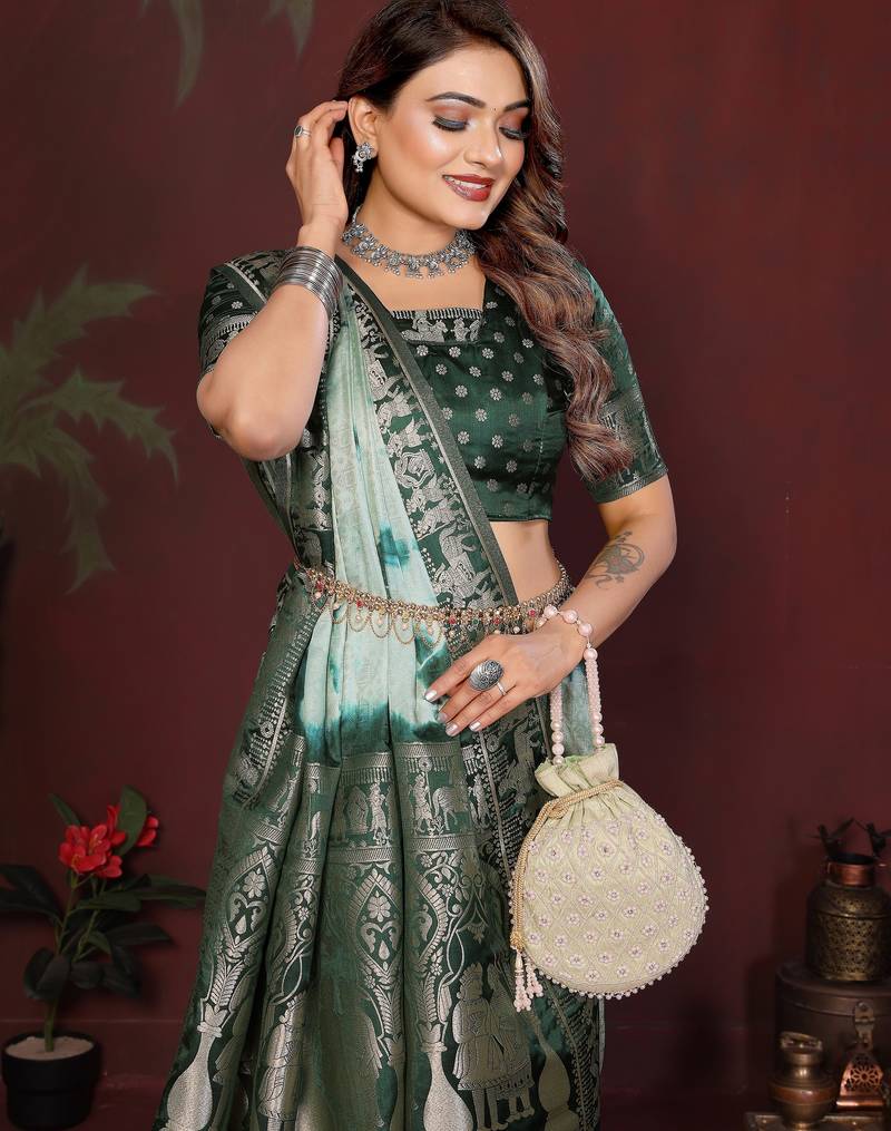 Green color satin silk fabric saree for ethnic indian looks