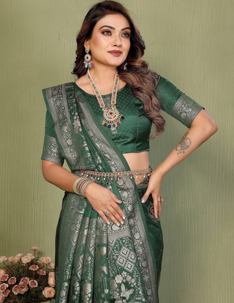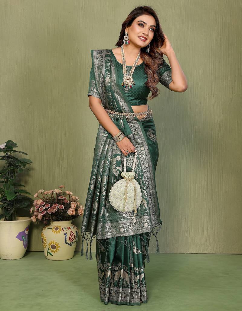 | Product Name | Green Color Satin Silk Fabric Woven Jari Designer Partywear Saree | |
