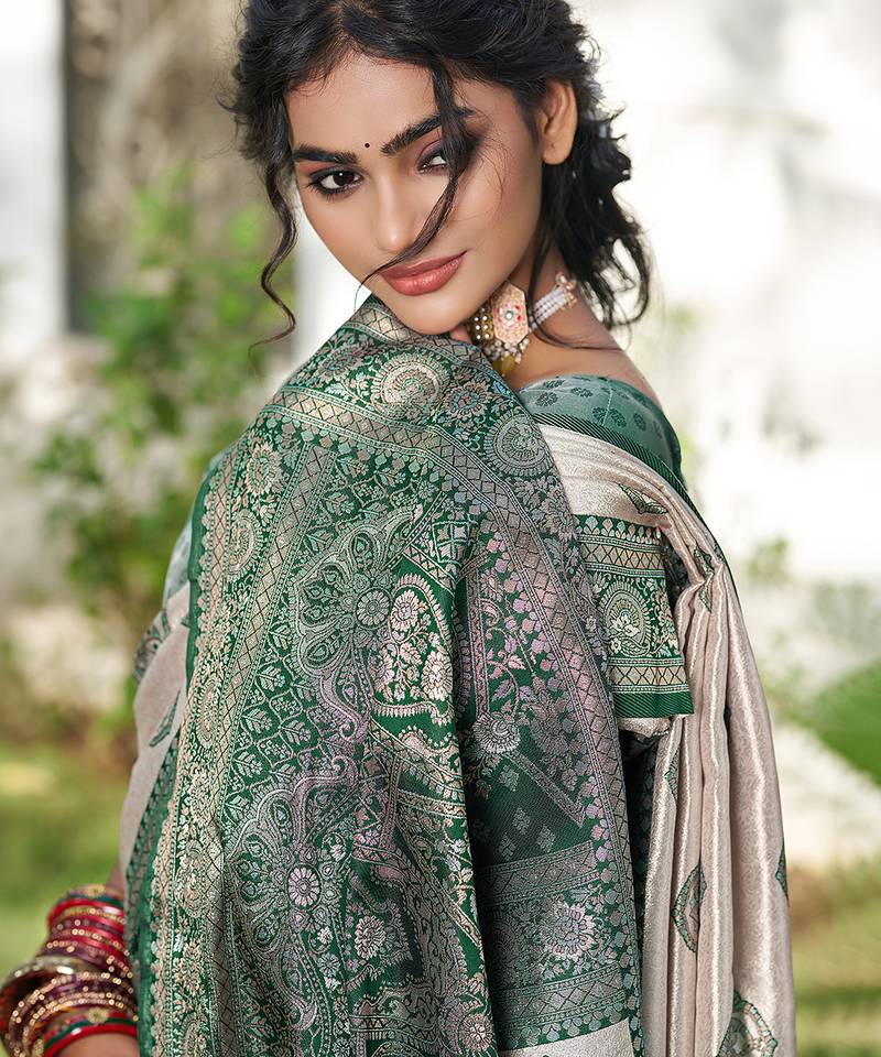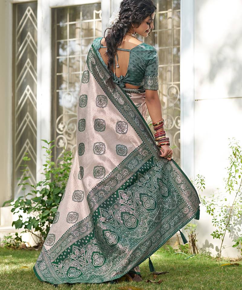Green color silk blend woven designer ethnic partywear saree
