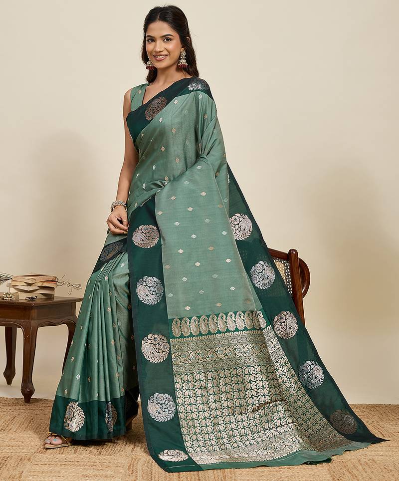 | Product Name | Green Color Soft Art Silk Fabric Woven Jari Designer Ceremonial Partywear Saree | |