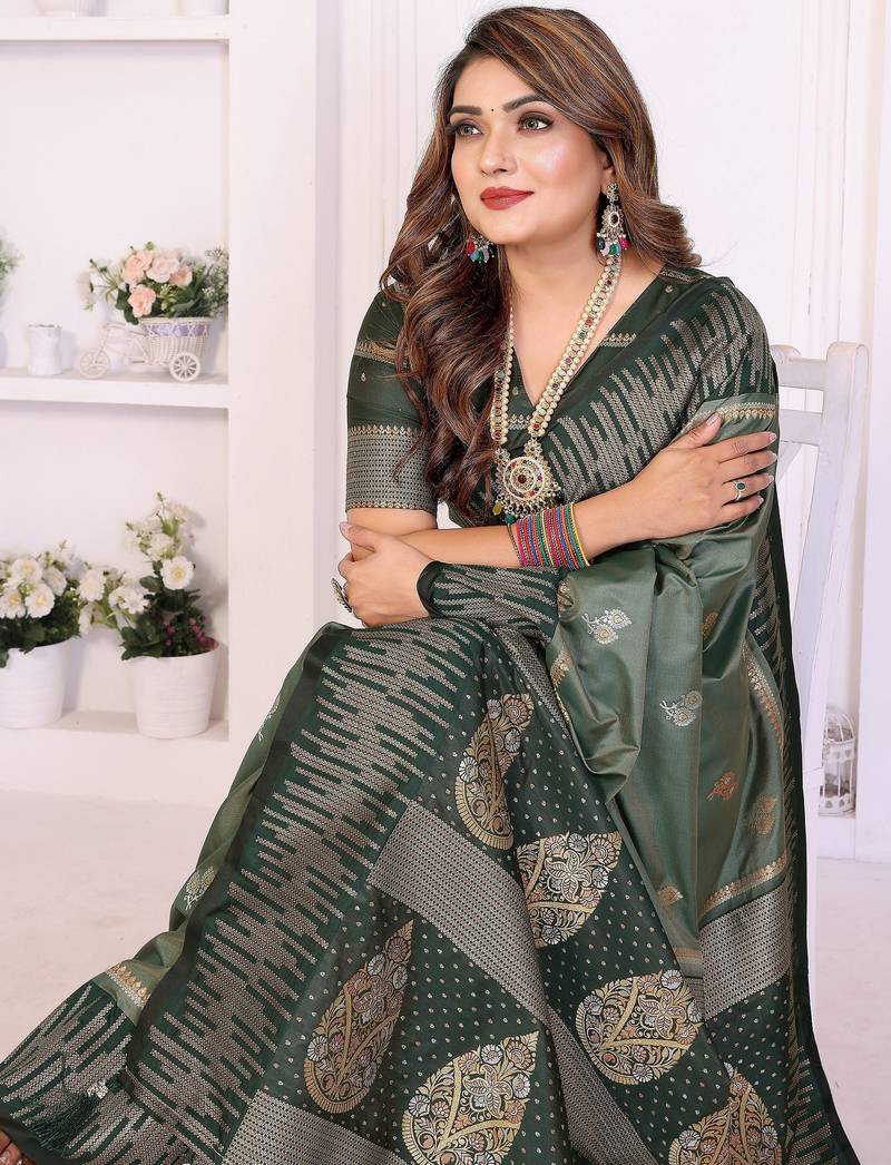 | Product Name | Green Color South Soft Silk Blend Blend Fabric Woven Rich Pallu Designer Ceremonial Saree | |