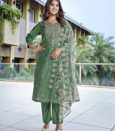Green color stylish partywear readymade ethnic suit
