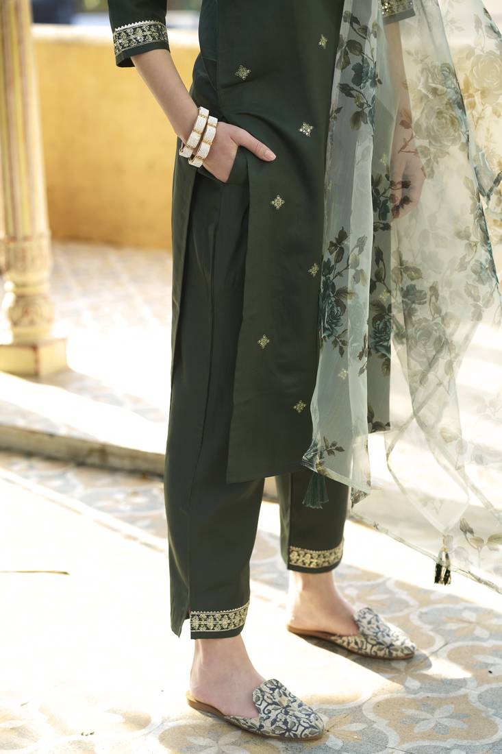 | Product Name | Green Color Viscose Rayon Fabric Beautiful Embroidered Kurta Set With Dupatta | |