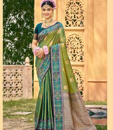 Green color woven designer soft silk fabric for ethnic party looks