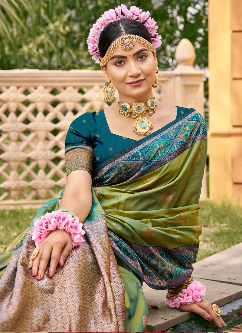 Product Name Green Color Woven Designer Soft Silk Fabric For Ethnic Party Looks