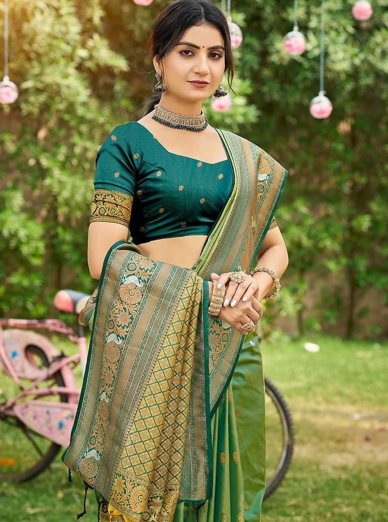 | Product Name | Green Color Woven Designer Soft Silk Fabric Trendy Rich Looks Saree | |