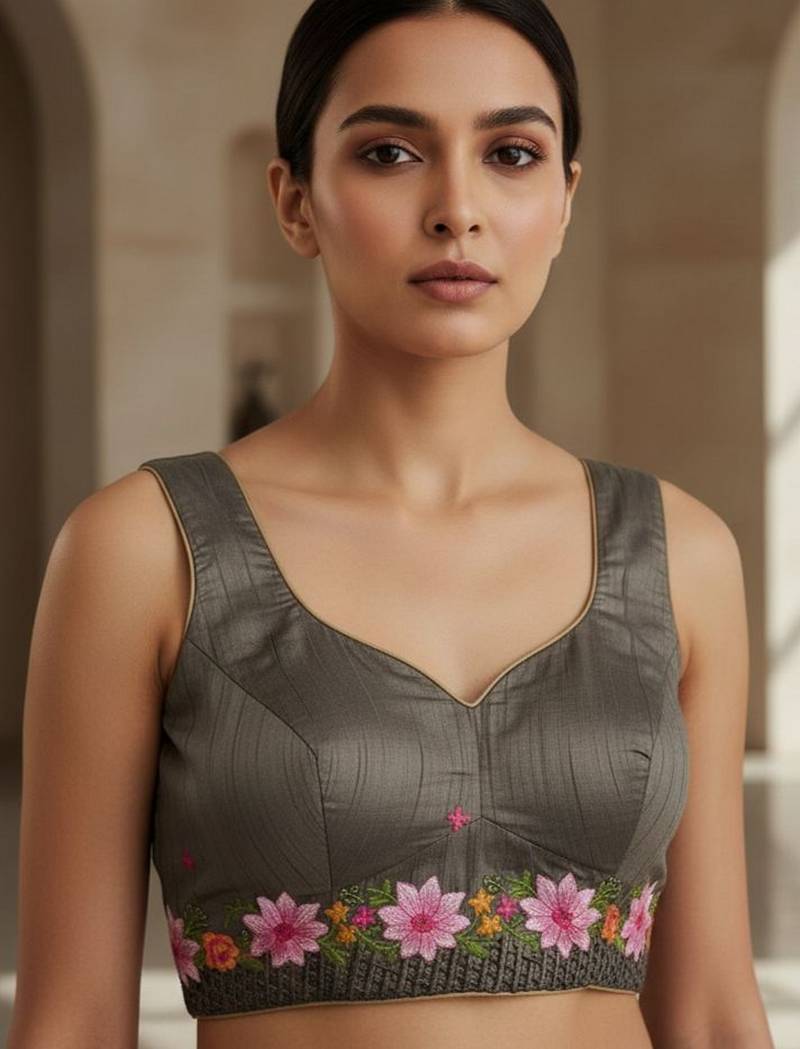 | • | Blouse | : | Color- Grey / Fabric- Art Silk |