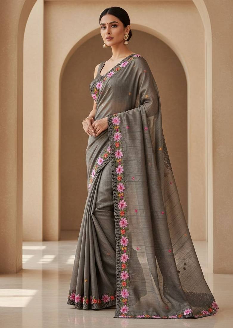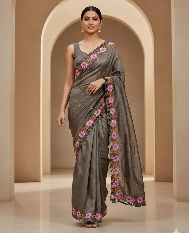 | • | Saree | : | Color- Grey / Fabric- Art Silk |