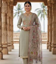 Grey color beautiful ethnic partywear embroidered suit unstitched