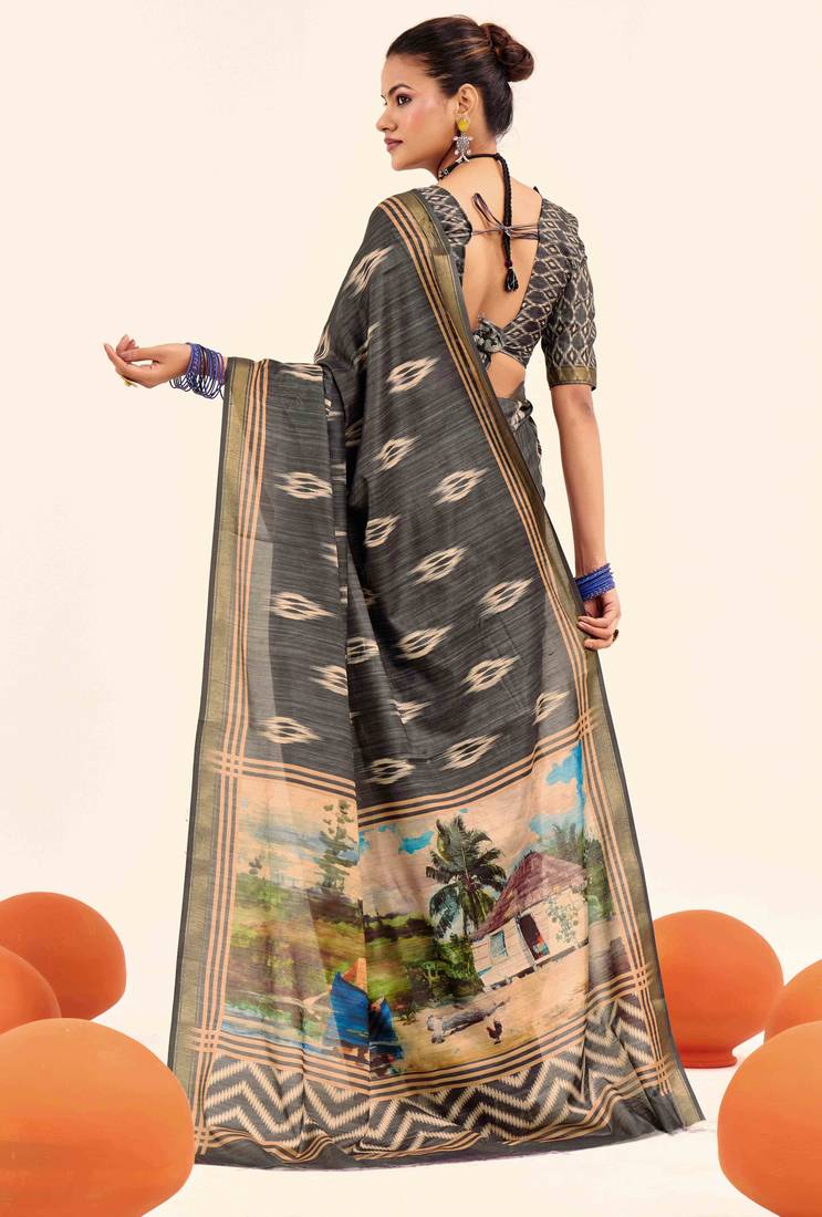 | Product Name | Grey Color Cotton Art Silk Fabric Designer Digital Printed Saree | |