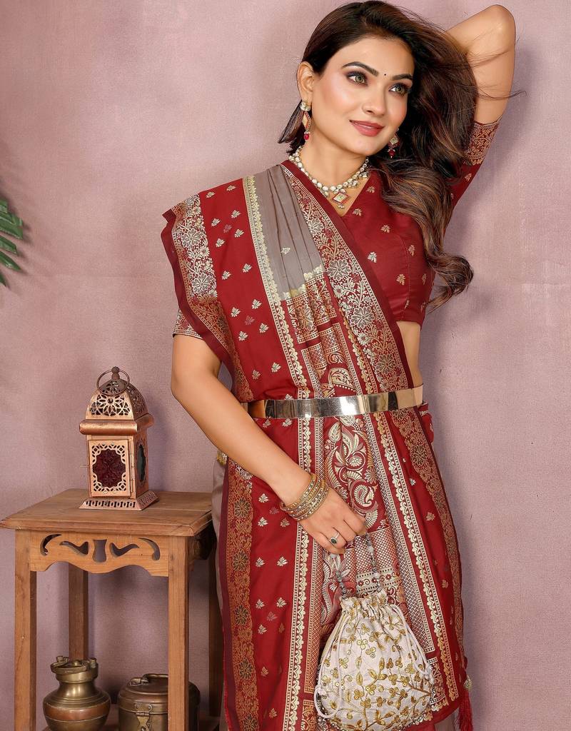 | Product Name | Grey Color Handloom Silk Blend Fabric Weaving Designer Ethnic Partywear Saree | |
