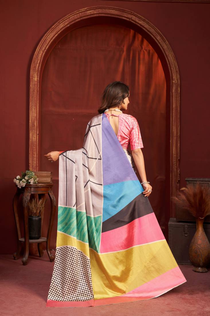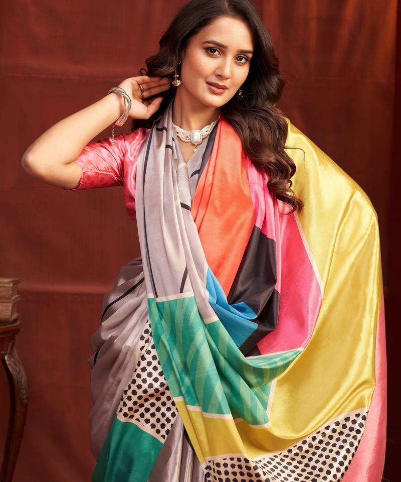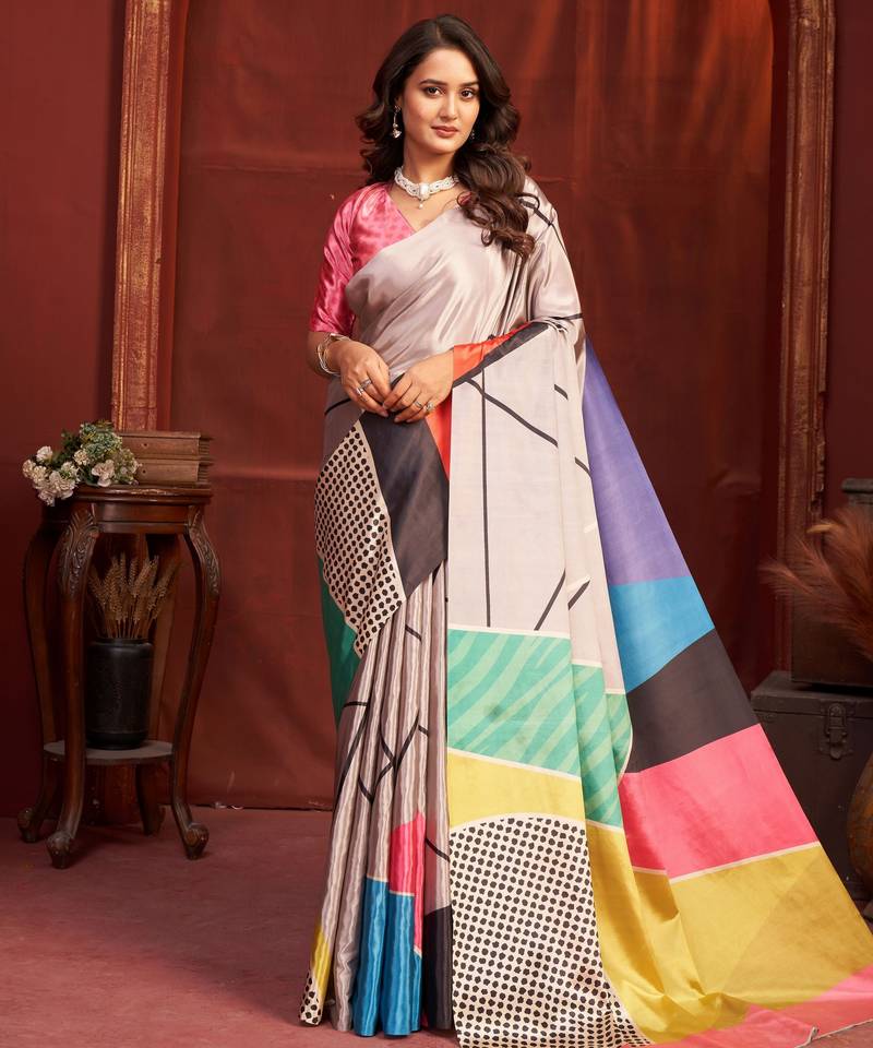 | Product Name | Grey Color Malai Crepe Art Silk Fabric Designer Digital Printed Girlie Fashinova Saree | |