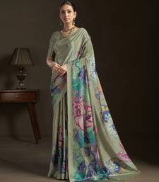 Grey color stylish digital printed silk blend crepe fabric saree for trendy looks