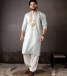 Ice blue color smart embroidered kurta for rich classy men's looks