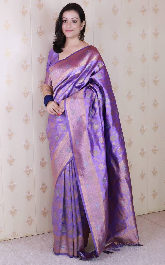 Lavender color banarasi silk saree for graceful traditional looks saree