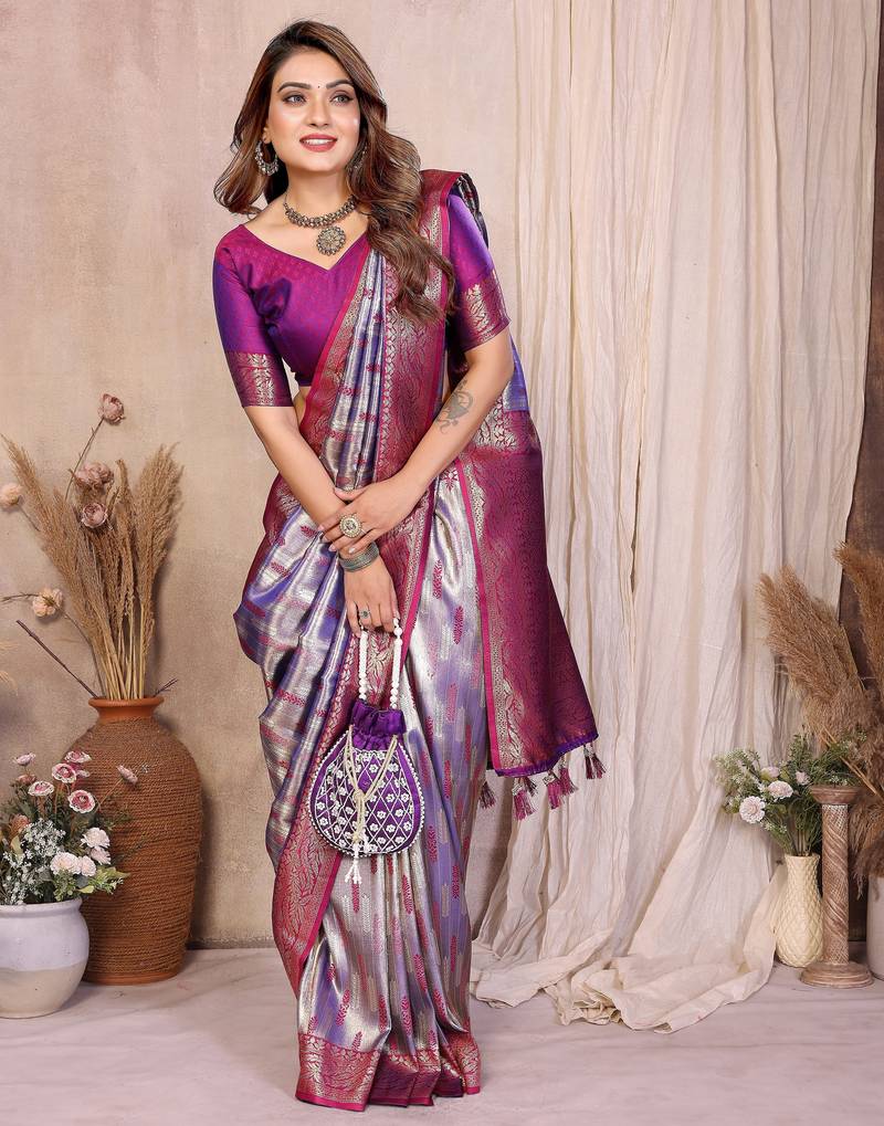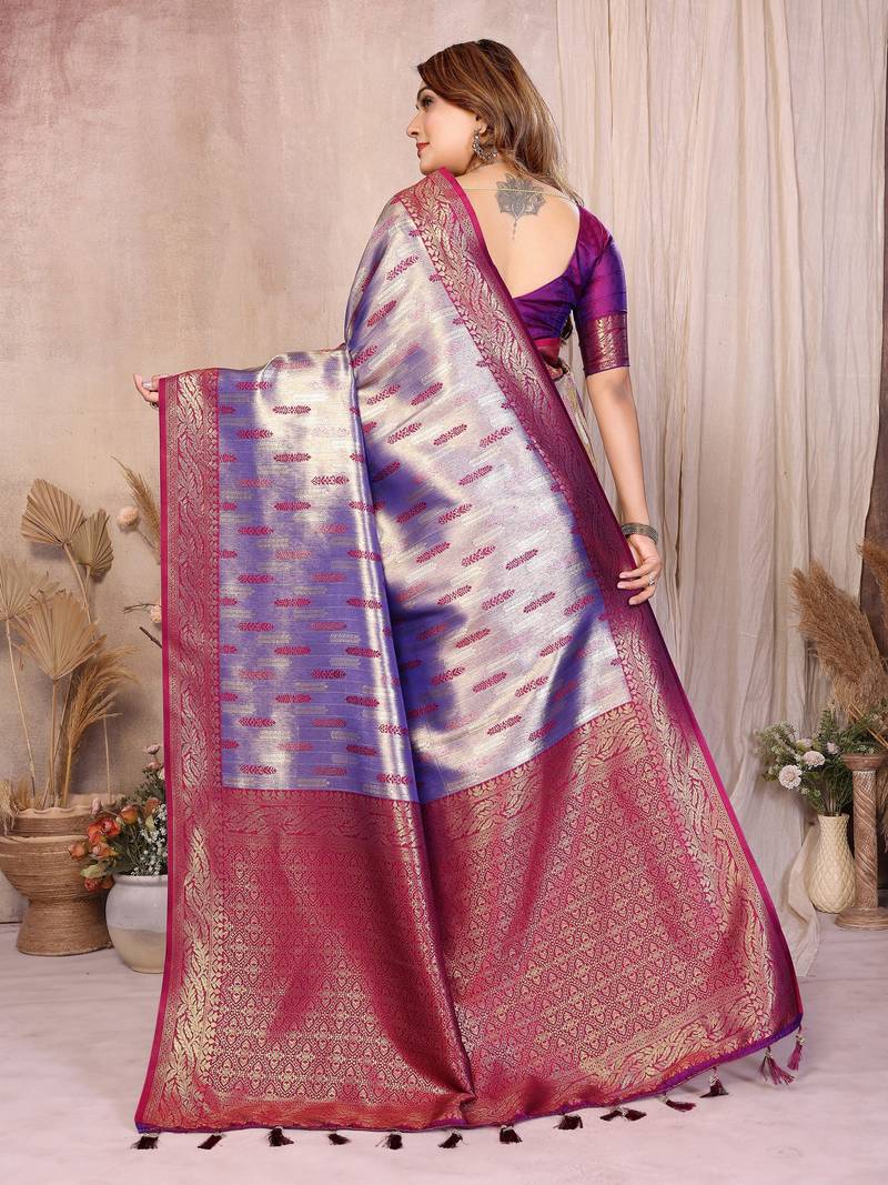 Lavender color beautiful banarasi tissue silk blend blend rich sophisticated saree