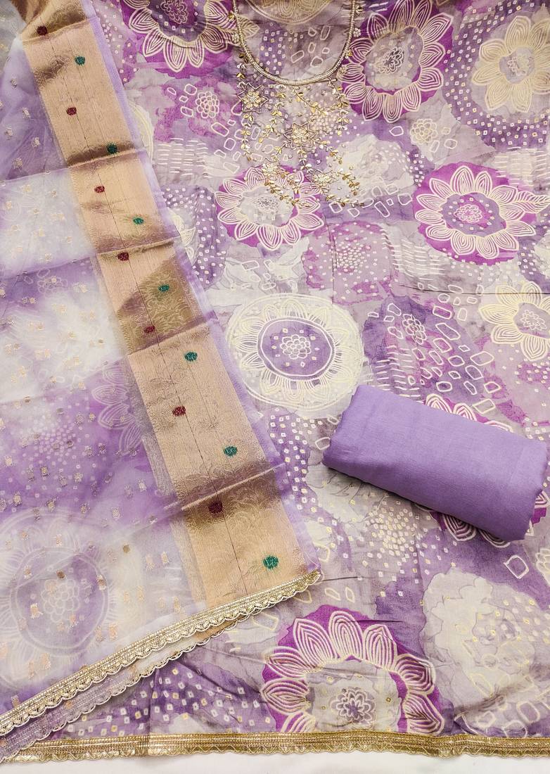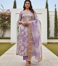 Lavender color beautiful printed designer modal silk salwar suit unstitched