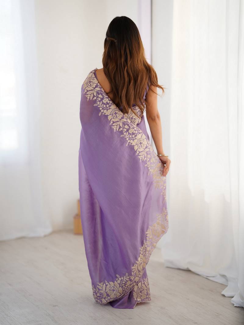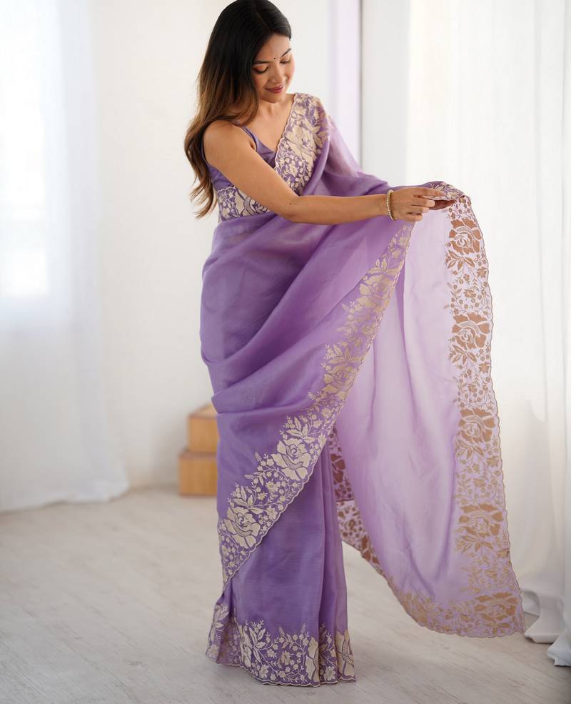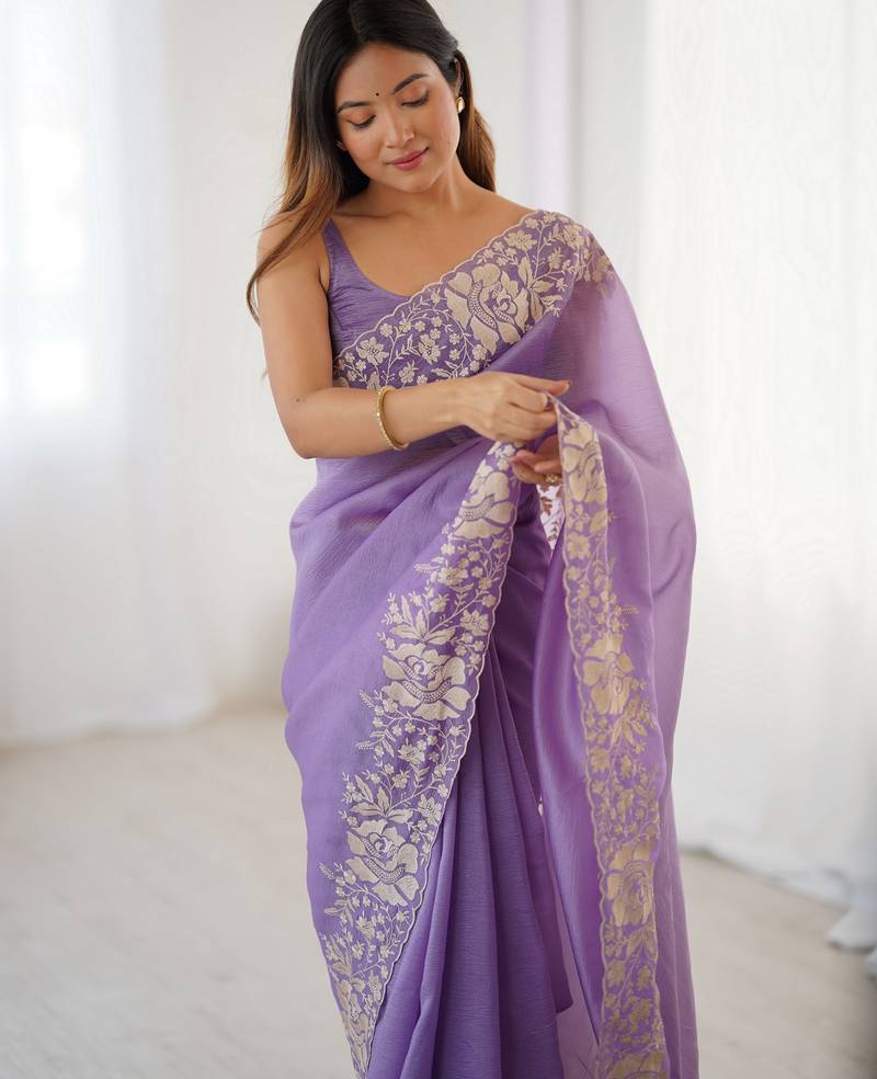 Lavender color candy crush fabric beautiful partywear saree for girlie looks