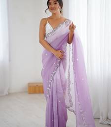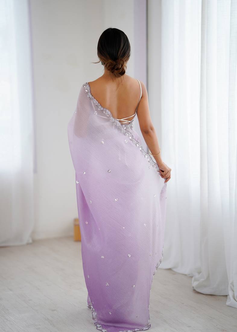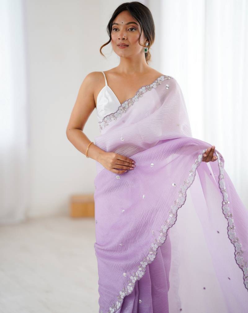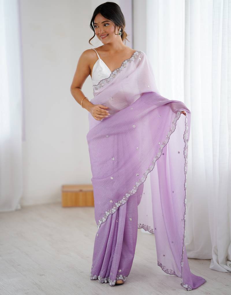 Lavender color chiffon crush fabric beautiful sophisticated work ceremonial saree