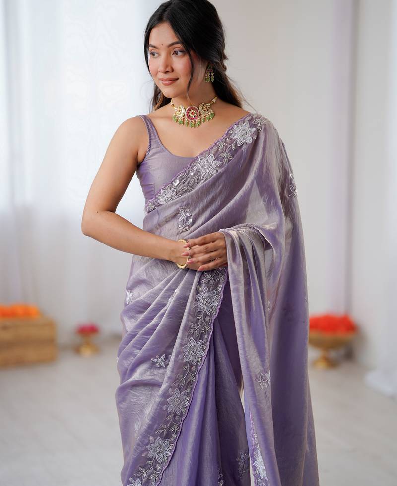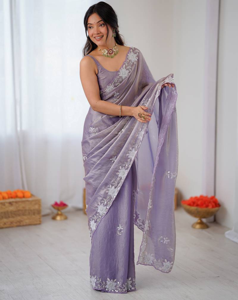 | Product Name | Lavender Color Chiffon Graceful Embroidered Bollywood Saree | |