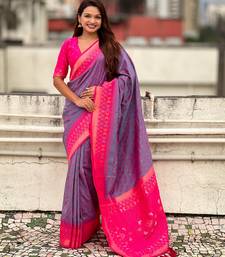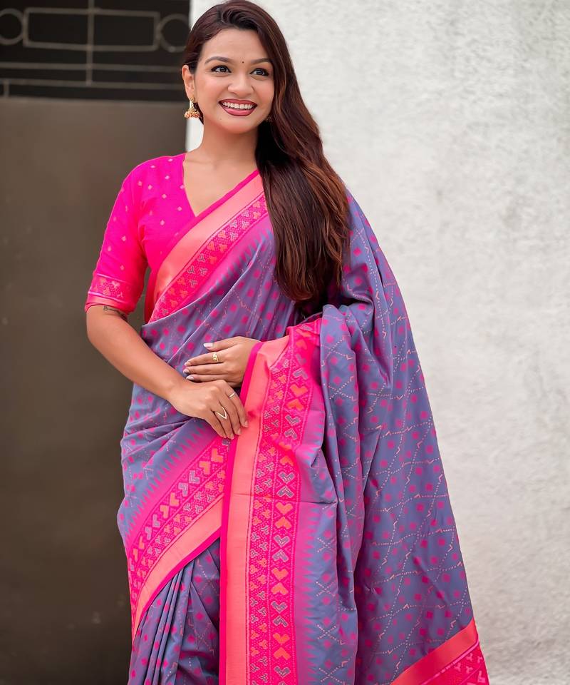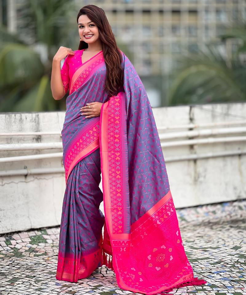 Lavender color woven meenakari ikkat designer patola silk saree