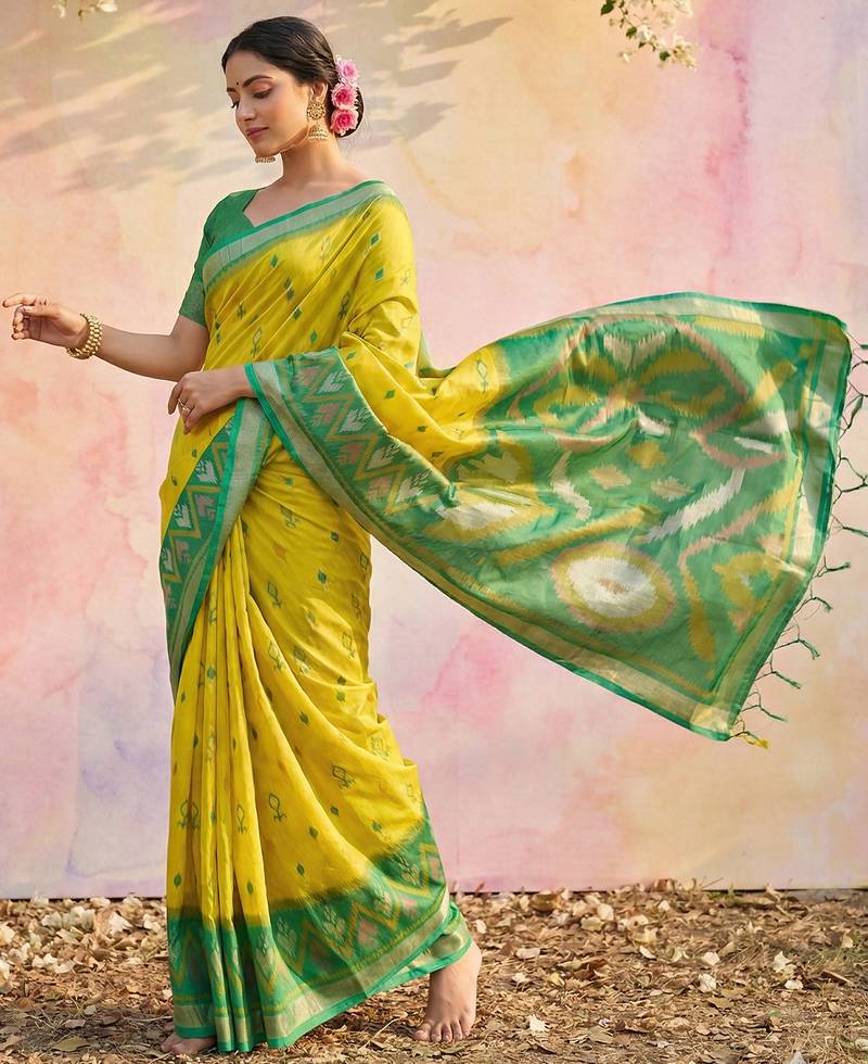 Lemon color soft silk woven designer graceful ethnic partywear saree