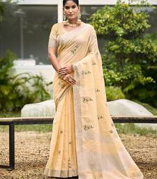 Light peach color beautiful linen fabric sophisticated ethnic saree
