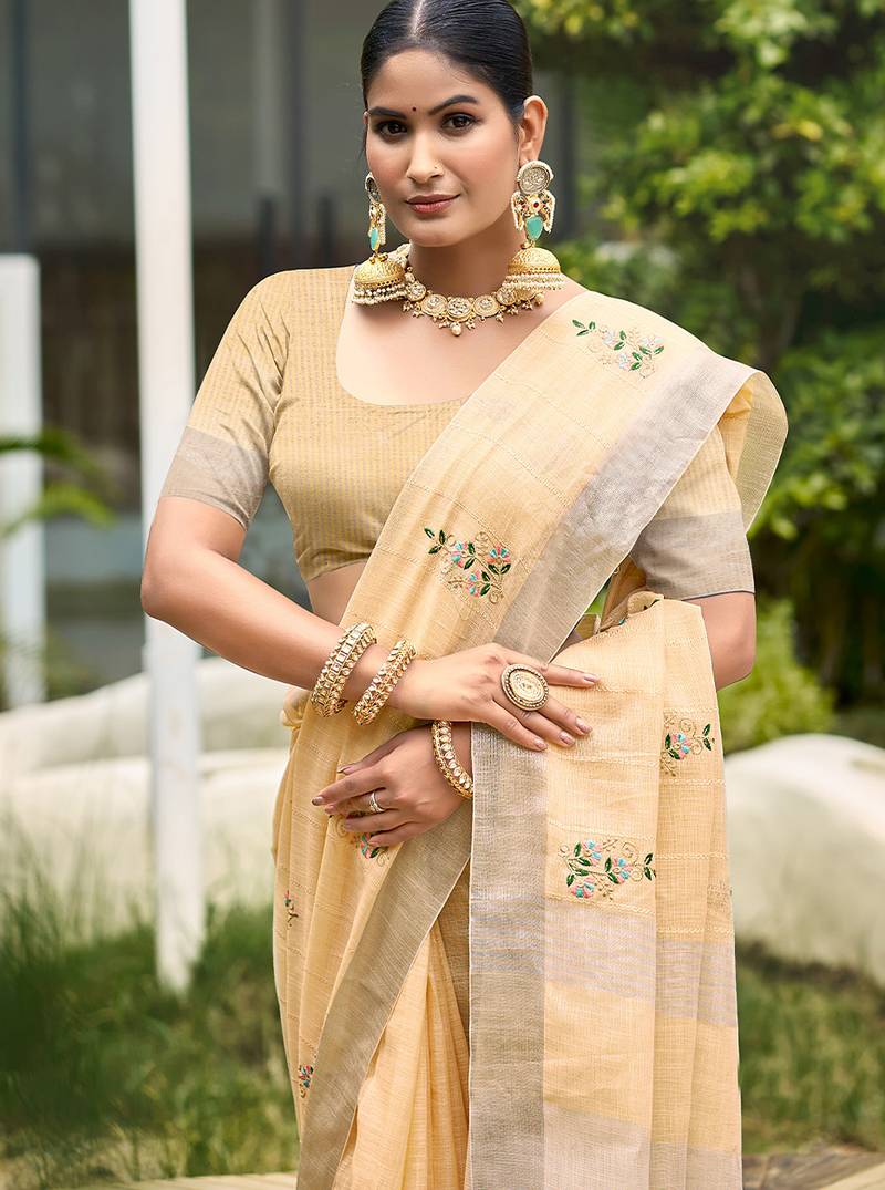 | Product Name | Light Peach Color Beautiful Linen Fabric Sophisticated Ethnic Saree | |