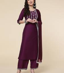 Magenta colour polyester fabric resham work ethnic palazzo suit stitched