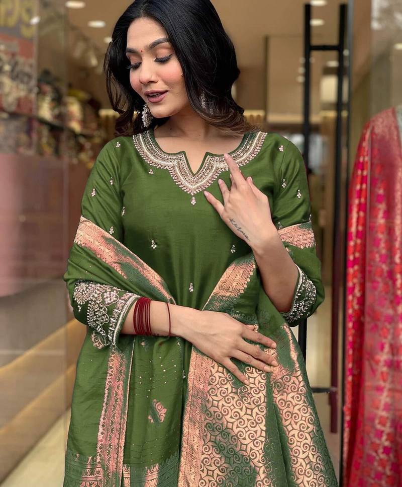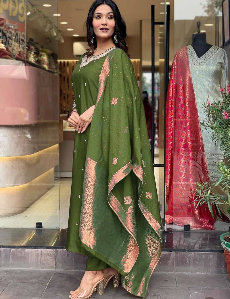 | • | Dupatta | : | Color- Green / Fabric- Art Silk |