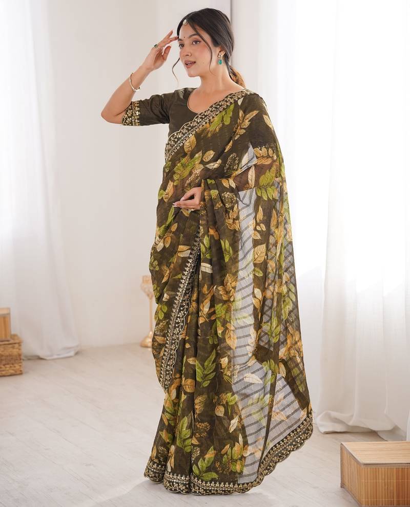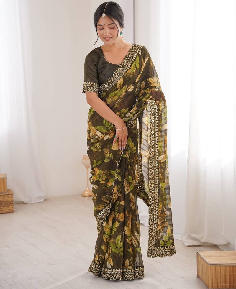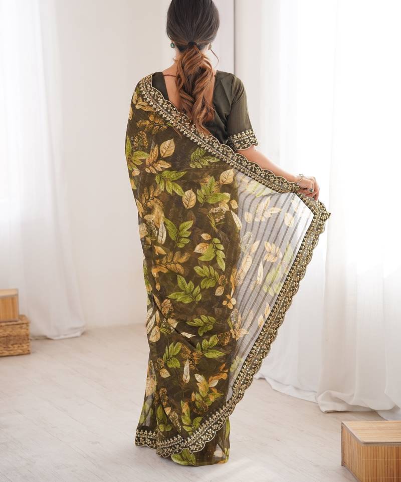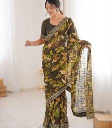 Mahendi color marble patta fabric stylish festive special saree