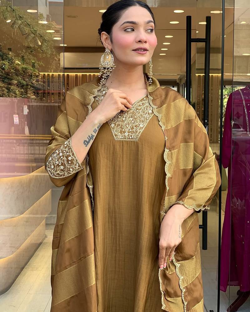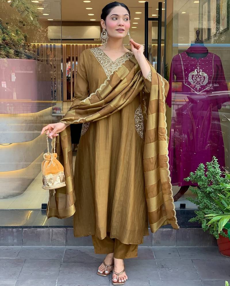 | Product Name | Mahendi Silk Blend Embroidered Partywear Salwar Kameez | |