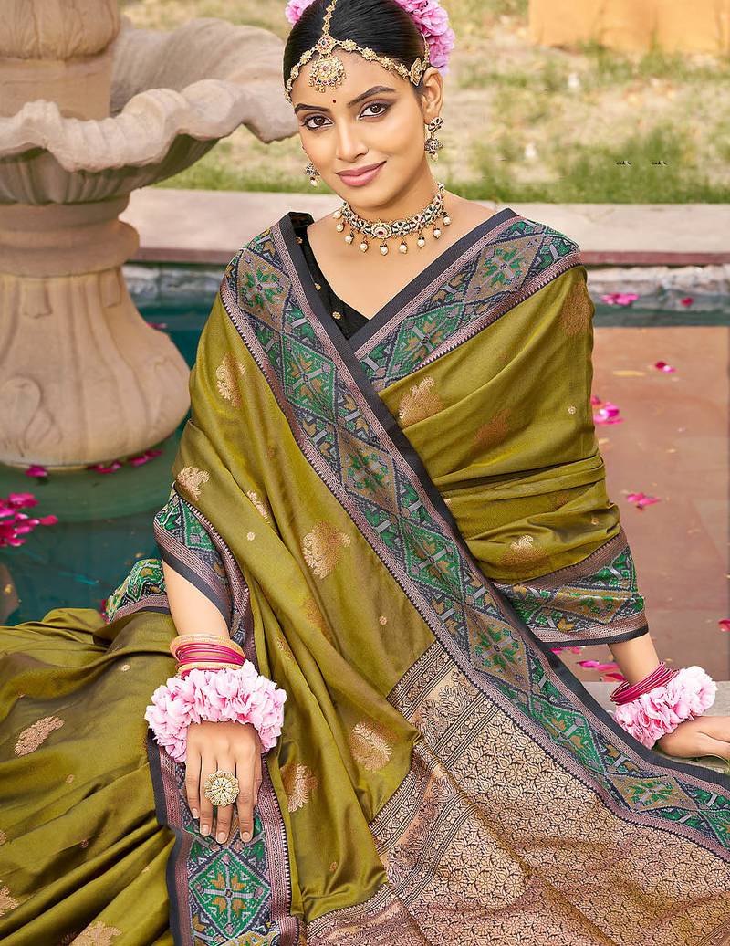 Mahendi color woven designer soft silk fabric for ethnic party looks