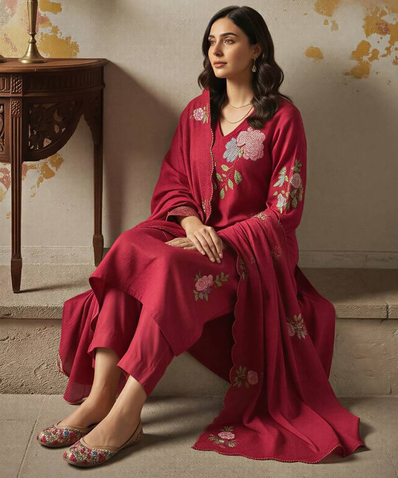 | Product Name | Maroon Chanderi Embroidered Kurta Pant Set | |
