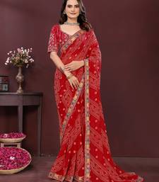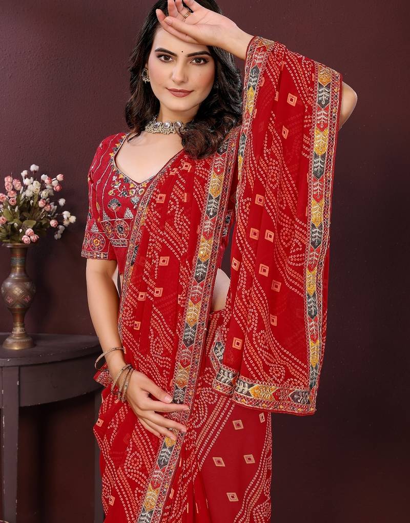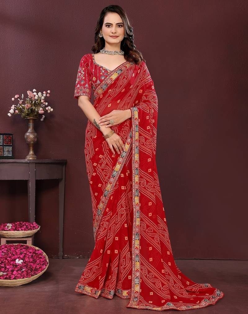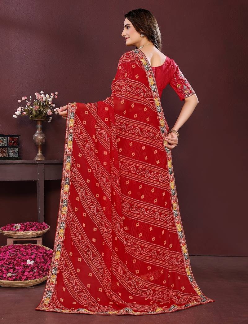 Product Name Maroon Color Georgette Fabric Bandhej Printed Traditional Saree