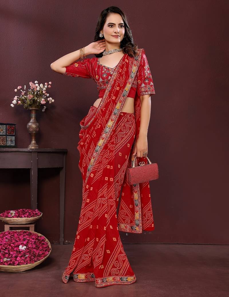 Garb These Party Wear Saree In Fine Colored.These Saree Are Georgette Are Georgette And Blouse Is Art Silk Fabricated.Its Beautified With Designer Bandhani Printed With Embroidery Work Lace Border And Blouse.
