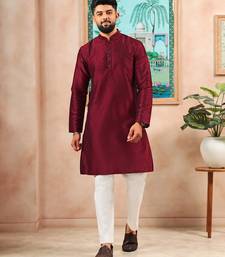 Maroon color graceful partywear kurta payjama for mens ceremonial looks