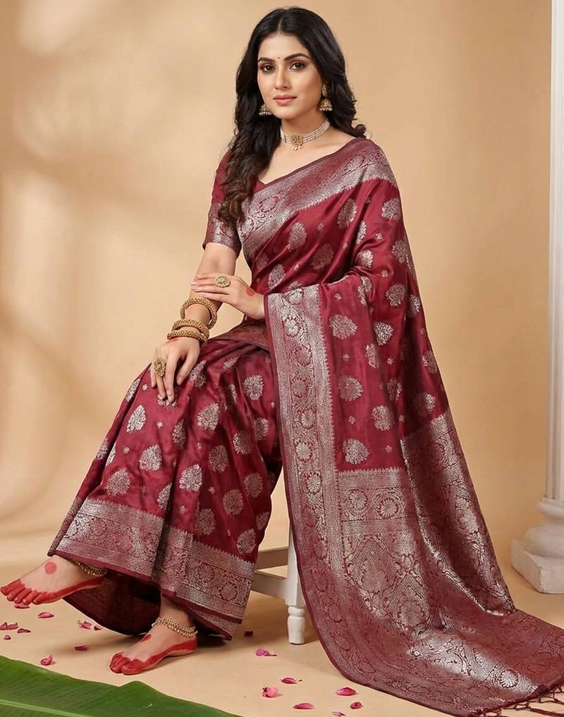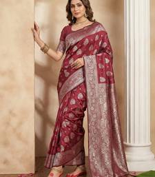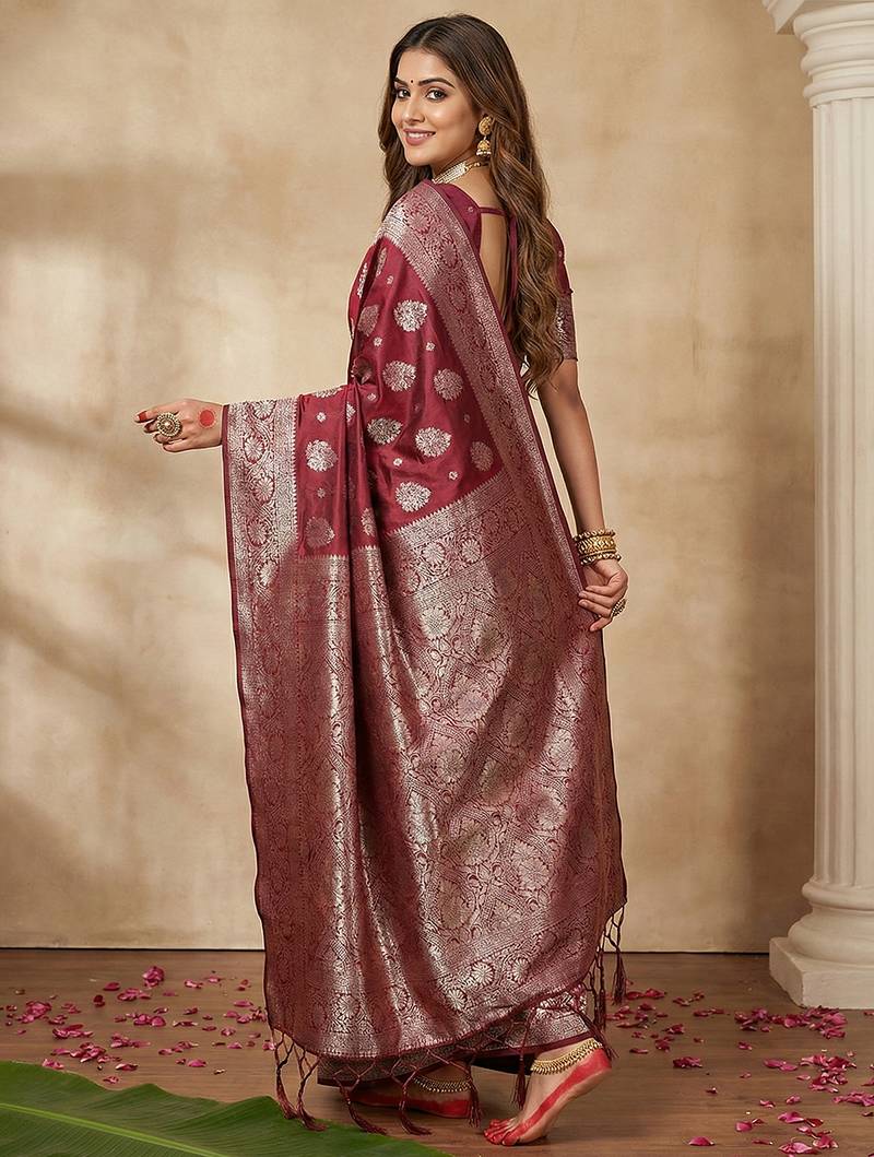 Maroon color silk blended ethnic partywear ceremonial saree