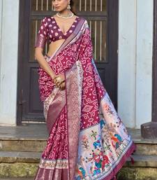 Maroon color silk blend blended traditional bandhani ajrakh printed saree