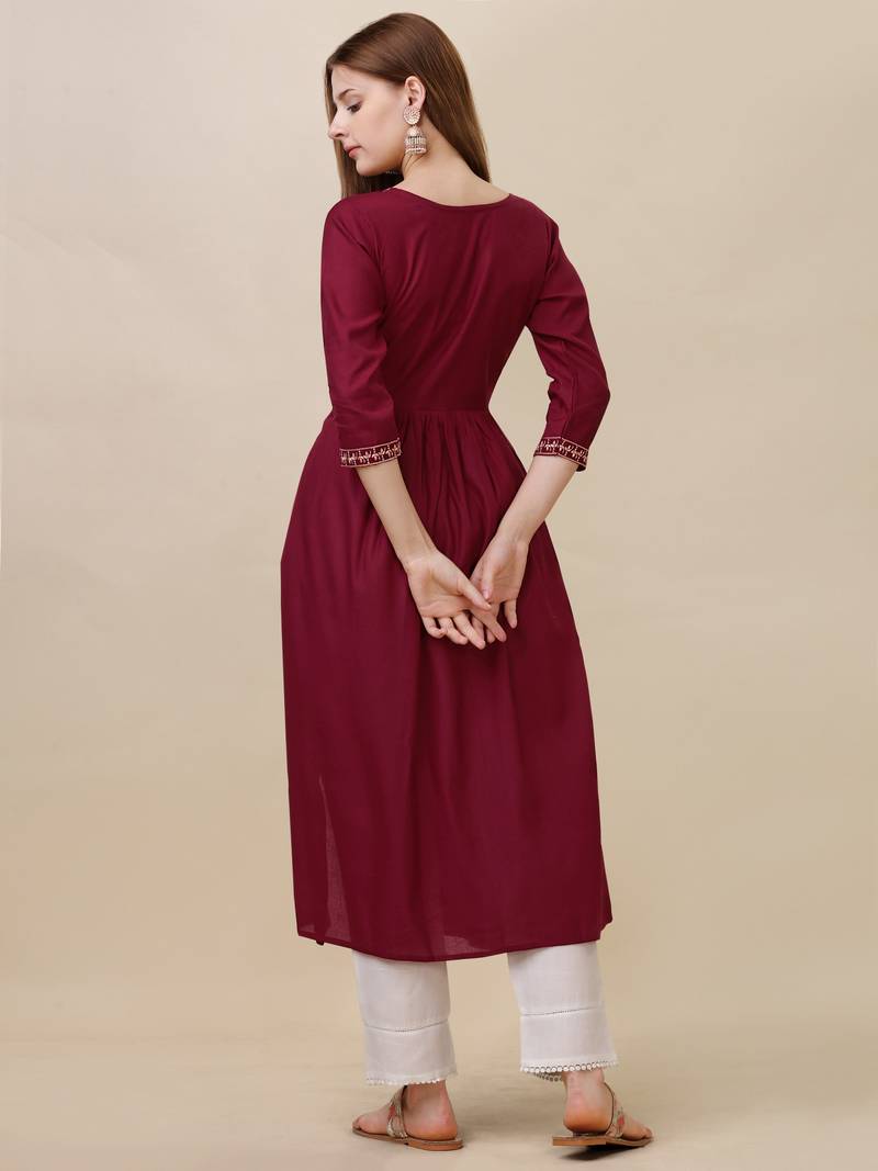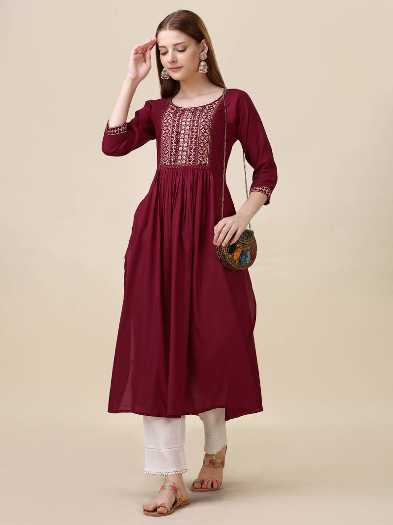 | Product Name | Maroon Colour Designer Sequince And Thread Embroidery Work Girlish Kurti | |