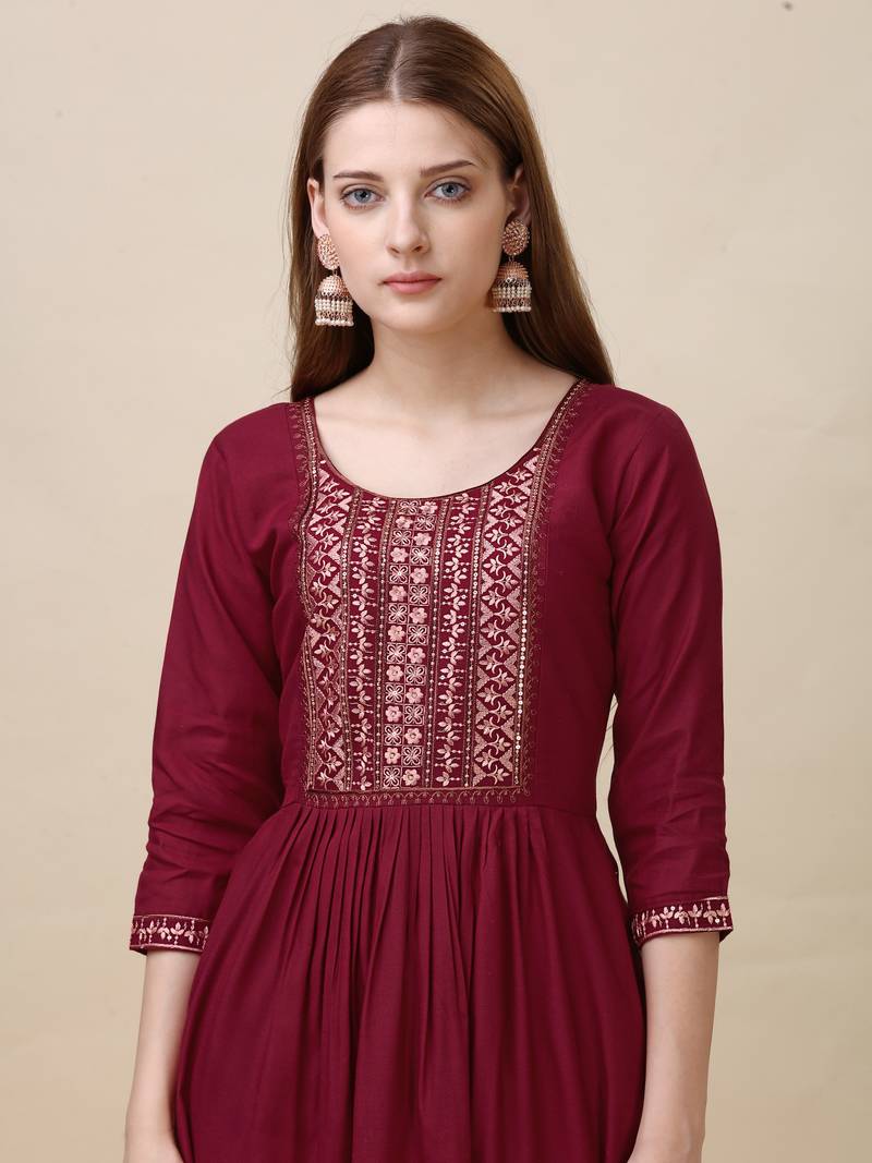 Maroon colour designer sequince and thread embroidery work girlish kurti
