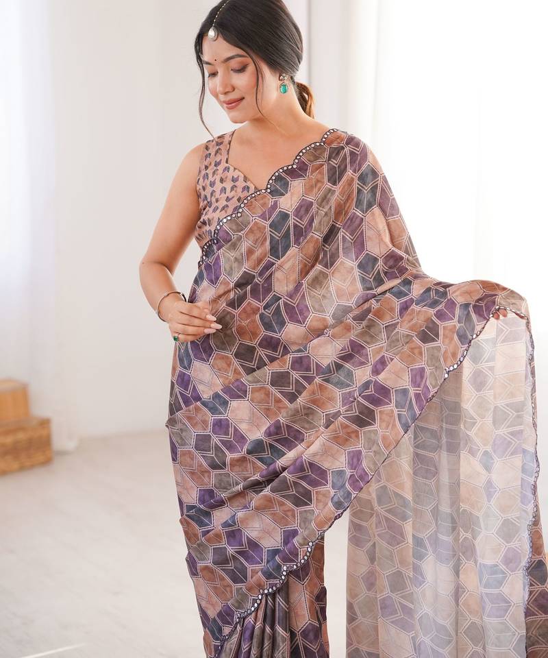 | Product Description | Attractive These Party Wear Saree In Fine Colored.These Saree Are Chinon And Blouse Is Chinon Fabricated.Its Beautified With Designer Digital Printed With Mirror Cut Work Border. |