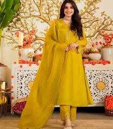 Mustard color beautiful viscose satin fabric designer ceremonial readymade suit