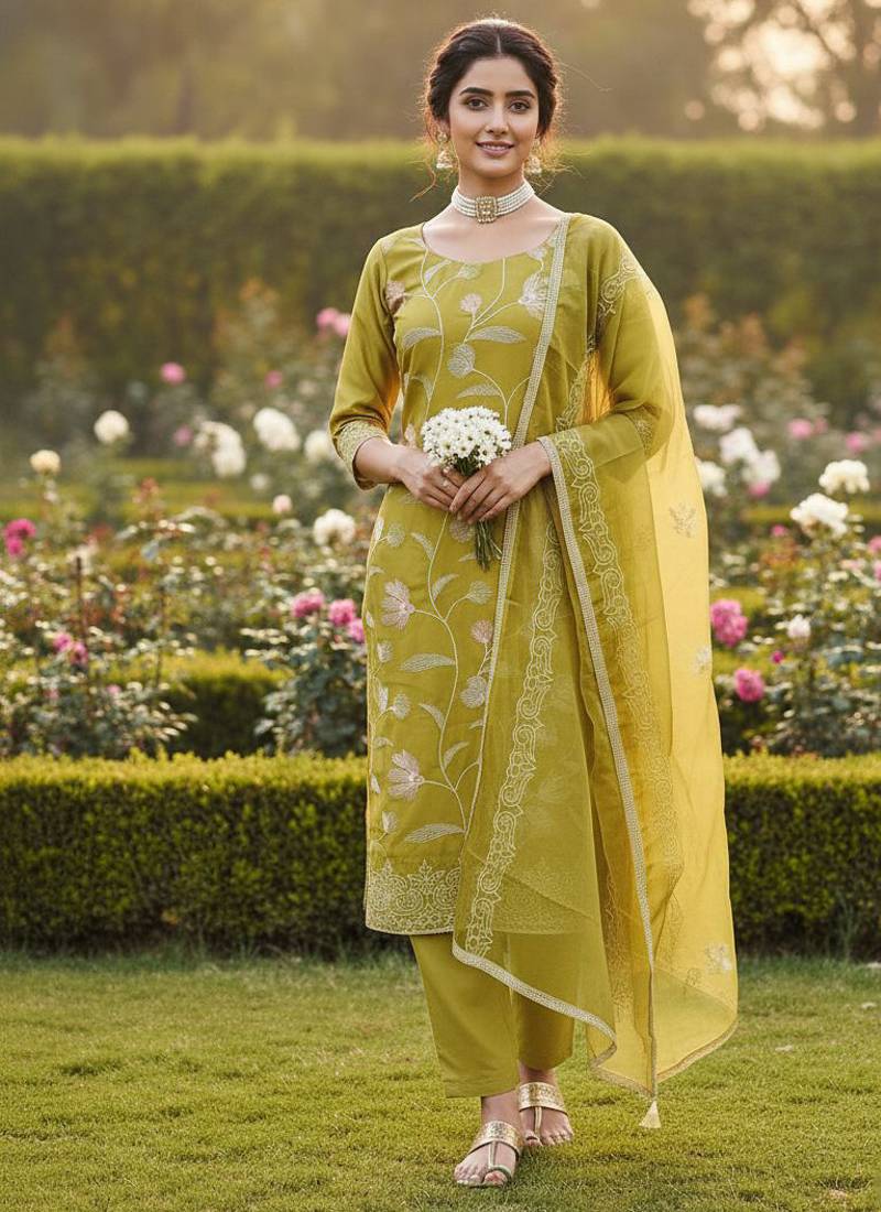 | Product Name | Mustard Color Glass Cotton Fabric Embroidered Ethnic Salwar Suit | |