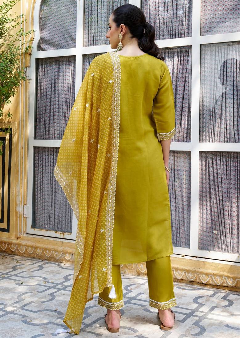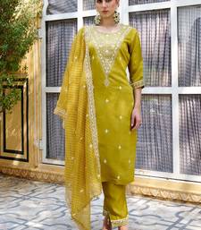 Mustard color silk blend fabric beautiful embroidered kurta set with dupatta