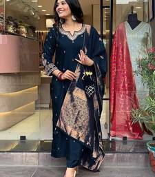 Navy blue embroidered ethnic suit