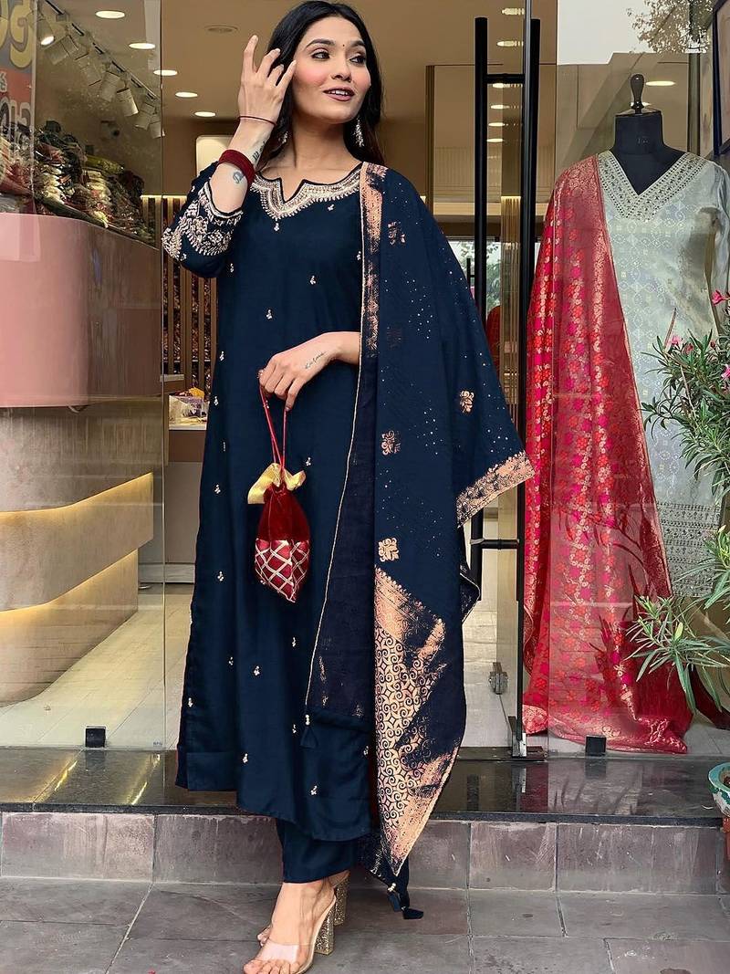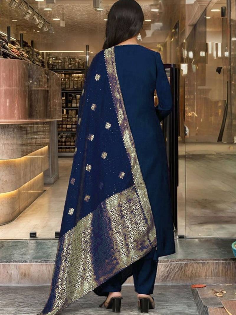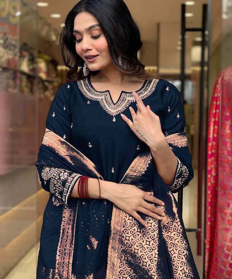 | • | Dupatta | : | Color- Navy Blue / Fabric- Art Silk |