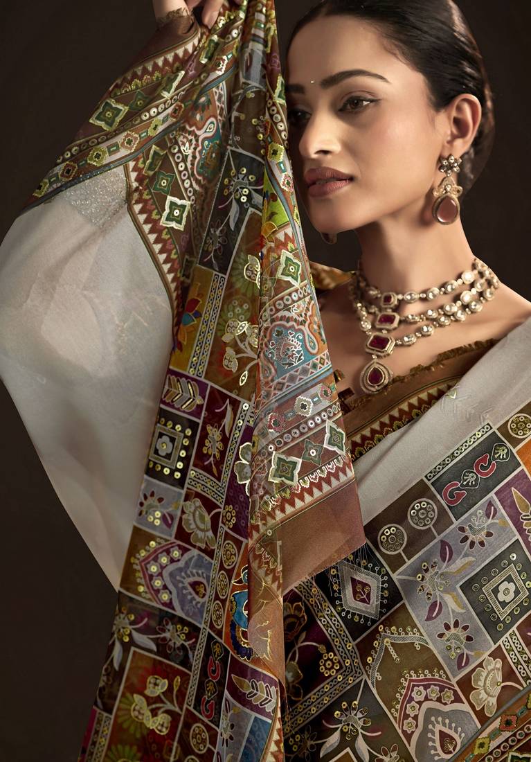 | Product Name | Off White Color Crepe Silk Blend Fabric Designer Foil Printed Saree | |